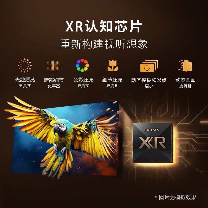 - 优秀的画质:搭载XR认知芯片,能够模拟人们认知事物的视听方式,进行交叉分析、优化处理图像元素,展现出耀眼夺目的亮度、缤纷绚丽的色彩和叹为观止的细节。搭配XR全矩阵分区控光,更亮更高对比度,由XR认知芯片驱动新设计的多重分区控光,展现格外真实细腻的场景和令人惊叹的光影。