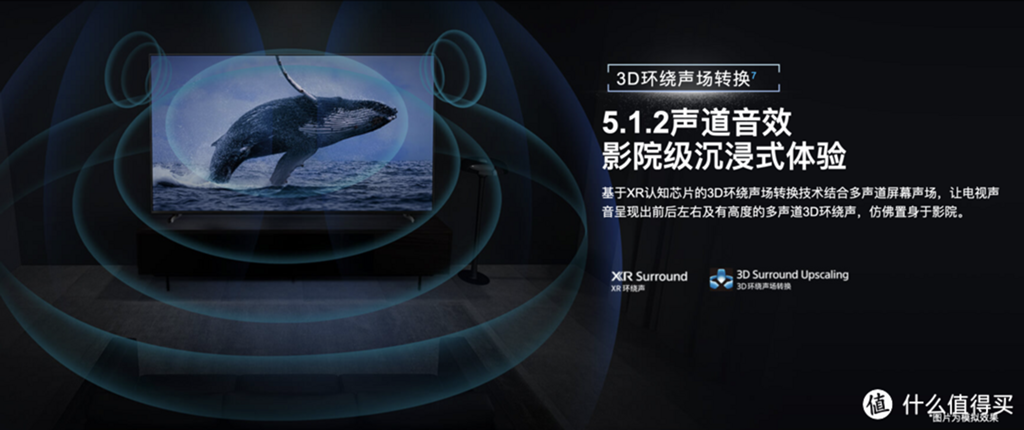 - 多声道屏幕声场技术:营造出音画合一的声音体验,通过3D环绕声场转换技术优化音源,呈现出有高度感的5.1.2环绕音效。