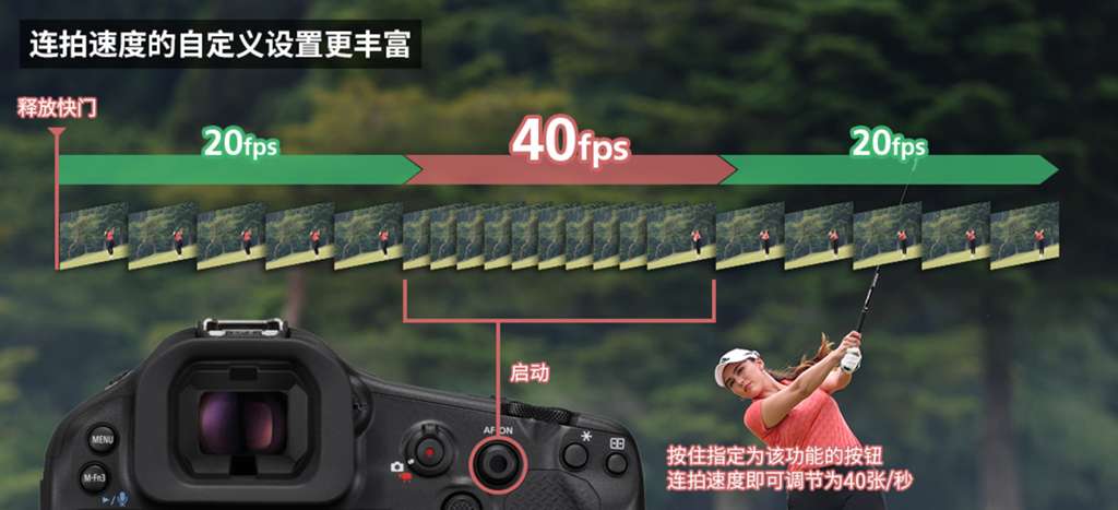 - 电子快门下连拍速度最高可达约40张/秒(自动对焦/自动曝光追踪),RAW连拍模式下最高支持约30张/秒。
